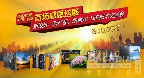 10月30日,以“十年載譽(yù)·新品呈鑒”為主題的邁銳光電十城感恩巡展暨新品推介會(huì)將在北京新云南皇冠假日酒店隆重舉行。屆時(shí),邁銳光電將聯(lián)袂國(guó)星光電、日月成科技、諾瓦電子、視誠(chéng)科技四大戰(zhàn)略伙伴,邀請(qǐng)各大客戶、渠道商、集成商、媒體朋友、行業(yè)同仁共聚一堂,為大家奉上本年度市場(chǎng)與技術(shù)方面最前沿、最實(shí)用的LED視聽(tīng)盛宴。
