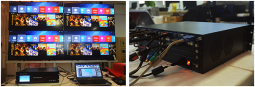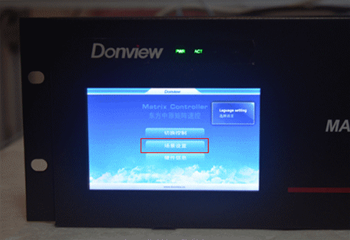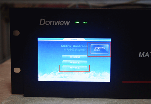 觸摸屏可選擇語言,分中文與英文兩種。而選擇項為切換控制、場景設(shè)置和硬件信息。在切換控制區(qū),可迅速在4個輸出板卡之間轉(zhuǎn)換;而場景設(shè)置內(nèi),具備記憶功能,可保存以前的配置,在不需要連接PC的基礎(chǔ)上,直接讀取;硬件信息顯示的是網(wǎng)絡(luò)的基本信息,可在PC端更改IP地址后在此顯示。