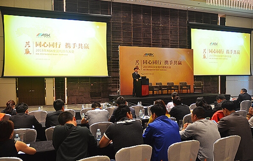 2015年5月11日,ASK全國代理商大會(huì)在北京舉辦,來自全國的重要合作伙伴、經(jīng)銷商、媒體等近100人悉數(shù)到場。會(huì)議以“同心同行 攜手共贏”為主題,向渠道表明了ASK對未來的信心,并針近期公司的情況進(jìn)行了說明,以消除渠道對于品牌的疑慮。