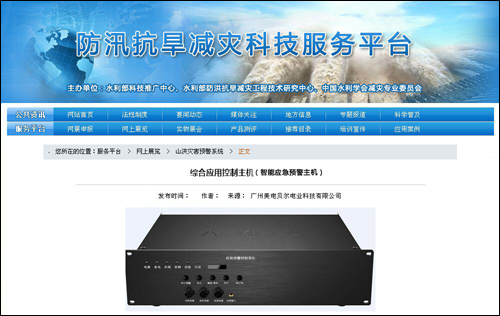美電貝爾自主研發(fā)生產(chǎn)的智能應(yīng)急預(yù)警主機(jī)、智能應(yīng)急預(yù)警分機(jī)經(jīng)過嚴(yán)格的篩選和評審,最終已優(yōu)異的成績獲得了評審組的高度認(rèn)可,近期已經(jīng)在“防汛抗旱減災(zāi)科技服務(wù)平臺”進(jìn)行展覽。