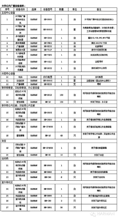 1):安裝HARMAN機(jī)柜式網(wǎng)絡(luò)廣播終端、純后級(jí)廣播功放、廣播避雷器、室外全天候防水廣播音柱。在校園公寓、教學(xué)樓、食堂、實(shí)驗(yàn)樓、辦公樓等各個(gè)樓宇室外安裝,;匹配全天候的室外防水廣播音柱,全鋁合金結(jié)構(gòu),全天候防雨防腐蝕;廣播線(xiàn)路增配廣播避雷器,自動(dòng)轉(zhuǎn)接雷電于大地,確保雷電天氣廣播系統(tǒng)設(shè)備安全;