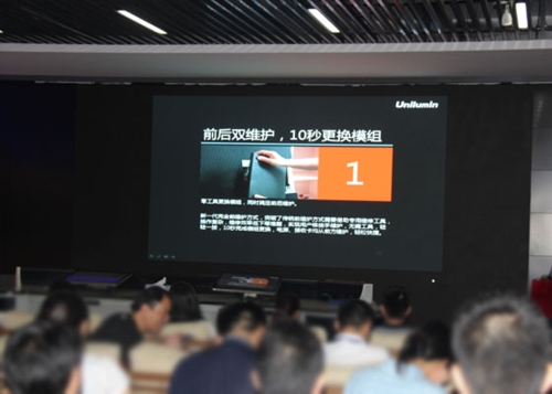520,是一個(gè)特別的日子,由顯示市場(chǎng)管理部組織的新一代戶內(nèi)固定安裝完全前維護(hù)LED顯示屏A3發(fā)布會(huì)在深圳福永總部一樓召開,國際、國內(nèi)銷售人員、售前、售后技術(shù)人員、市場(chǎng)人員等部分員工共聚一堂,一起揭開A3的神秘面紗。