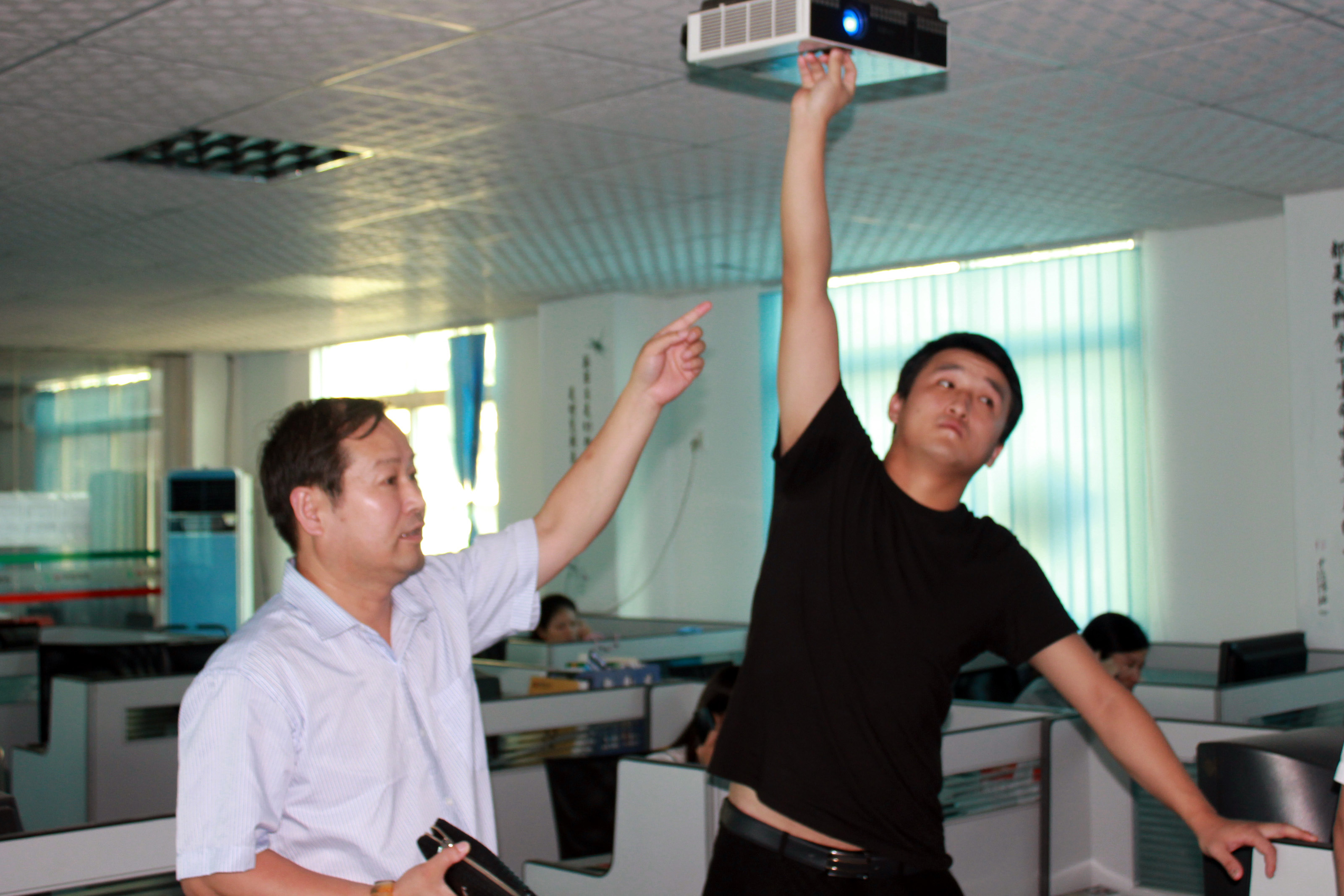索拓(深圳)顯示設(shè)備有限公司總裁王繼山先生現(xiàn)場(chǎng)視察指導(dǎo)投影機(jī)設(shè)備的調(diào)試