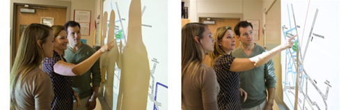 相比于穿透投影,短焦投影解決了操作者遮擋投影的問題