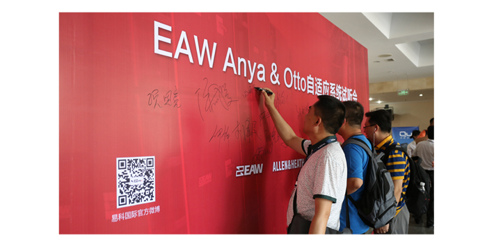 6月26日下午兩點整,來自華北地區(qū)的行業(yè)老師、歌舞團體、租賃公司、展覽展示公司、經銷商等300多位嘉賓陸續(xù)到達活動現(xiàn)場,在主題墻上留下一個個我們格外重視的名字。他們從四面八方趕來,都跟小編一樣對Anya & Otto自適應系統(tǒng)仰慕已久,希望能夠親眼見證它們的不凡魅力,享受一場頂級專業(yè)視聽系統(tǒng)帶來的藝術體驗。 下午兩點半活動準時開始,易科國際總裁祝曉軍先生致歡迎詞,對到場的各方嘉賓多年來的信賴和支持表示誠摯的感謝。他表示:易科國際專注于視覺和聽覺的藝術體驗形式,秉持“簡易,科技,共享”的企業(yè)愿景與使命,致力于打造整合行業(yè)優(yōu)質資源的高科技平臺,愿借此機會與各位共享EAW自適應系統(tǒng)的創(chuàng)新科技。