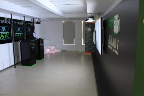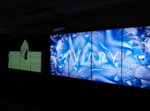 1樓動態(tài)展廳搭建了配合Hippotizer的迷你建筑投影模型,從設(shè)計到素材制作全部由公司團(tuán)隊制作完成,背景模型參考外灘匯豐銀行大樓進(jìn)行設(shè)計,使客戶在展廳即可參觀通過媒體服務(wù)器配合投影機營造的建筑投影特效。邊上也有用Aviary的4K媒體播放器Parakeet連接4塊拼接屏進(jìn)行超高清片源的播放。