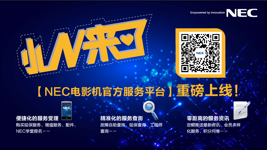 大家是不是都很期待和小N見面了呢?那就快快拿出手機(jī)掃描以下二維碼關(guān)注“NEC 電影機(jī)官方服務(wù)平臺”吧,小N期待與您見面!