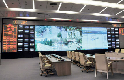 某地公安系統(tǒng)項(xiàng)目在指揮調(diào)度,應(yīng)急指揮及道路監(jiān)控等應(yīng)用的大屏幕系統(tǒng)采用了三菱電機(jī)的60英寸LED光源背投單元,由4行10列拼接組成。