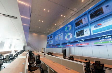 某地證券交易所大屏幕系統(tǒng)采用三菱電機(jī)的67英寸背投單元67PEF,5行14列拼接組成。三菱電機(jī)以高技術(shù)品質(zhì)、高清圖像應(yīng)用、高可靠性的產(chǎn)品為證券交易所在數(shù)據(jù)監(jiān)控、運(yùn)營(yíng)管理等方面提供了保障與基礎(chǔ)。