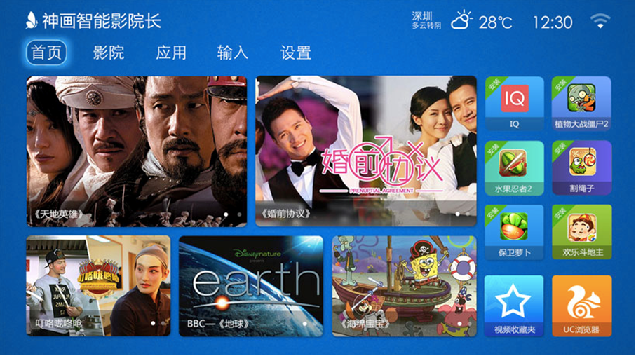 智能生態(tài)系統(tǒng):Y1采用了神畫(huà)科技專(zhuān)為投影產(chǎn)品深度定制的UI系統(tǒng),符合遠(yuǎn)距離投影操作邏輯,是迄今為止最好用的投影系統(tǒng)。