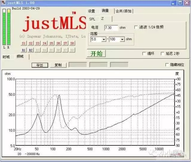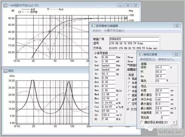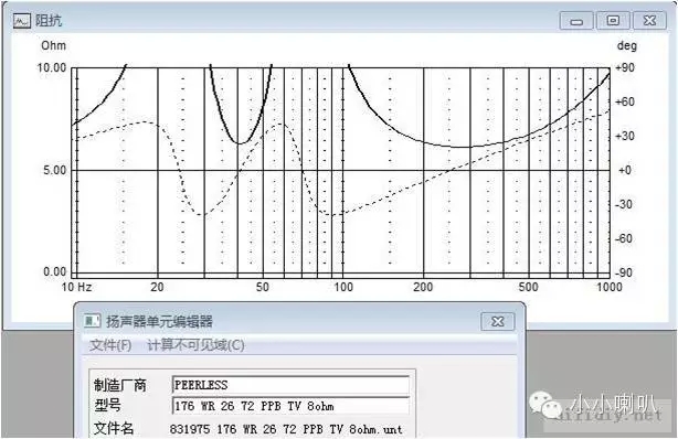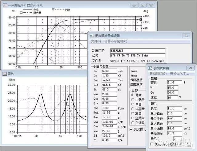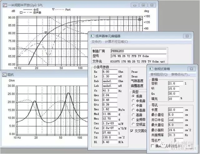 A、判斷箱體的調(diào)諧情況是否符合設(shè)計(jì)預(yù)期。比如將初步完成的箱系統(tǒng)的阻抗曲線與模擬的進(jìn)行比較,如果差異較大,可以據(jù)此尋找原因。具體過程可以參考D‘Appolito的《實(shí)用揚(yáng)聲器測(cè)量》。這里要注意的是,阻抗測(cè)量結(jié)果受測(cè)量電平影響很大,T/S參數(shù)測(cè)量時(shí)的信號(hào)電平以及最后實(shí)測(cè)時(shí)的電平都會(huì)造成這個(gè)差異,應(yīng)該區(qū)別對(duì)待。