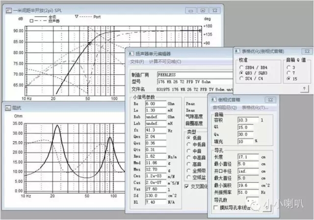 B:t/s參數(shù)不同的單元,需要不同的fc/fs,接近fs的fc并不總是理想的,這時(shí)良好的設(shè)計(jì)反而是得到不等高的阻抗雙峰。