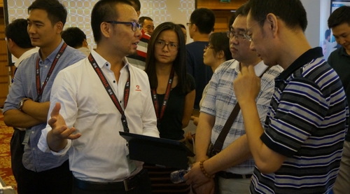 活動現(xiàn)場,TENDZONE東微為參會者展示了最新的e-Media多媒體交互式云平臺。專業(yè)的產(chǎn)品演示和精彩的演講引發(fā)了參會代表們對e-Media的濃厚興趣,活動現(xiàn)場不時有參會代表詢問e-Media功能、行業(yè)應用及實現(xiàn)效果等問題。