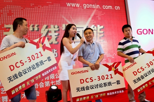 為回饋長期支持GONSIN公信的廣大客戶,本次活動特別設置了新品抽獎環(huán)節(jié),獎品為最新發(fā)布的DCS-3021無線會議系統(tǒng)一套。這份豐厚的禮品,讓在場客戶都心動不已,中獎客戶更是驚喜萬分。