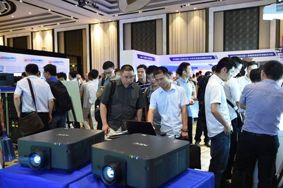 近兩年,激光光源和4K一直都是行業(yè)熱捧的話題,NEC作為行業(yè)的弄潮兒,早在去年就已經(jīng)開始針對這兩項技術(shù)批量供貨具體產(chǎn)品,此次發(fā)布會NEC也展示出了涵蓋三色三片技術(shù),單色三片技術(shù)以及單色單片技術(shù)不同亮度段的激光工程投影機(jī),其中,主屏幕的“全新‘塵封’系列3-DLP激光工程機(jī)智能疊加解決方案”備受矚目,由2臺NEC最新的12000流明的3DLP激光工程投影機(jī)PH1202L ,經(jīng)過NEC MST智能疊加融合軟件,以及高清攝像頭組成,完美實(shí)現(xiàn)點(diǎn)對點(diǎn)的疊加顯示,并且疊加后的顯示亮度達(dá)到24000流明,擁有20000小時的超長使用壽命,采用多模組結(jié)構(gòu),全密閉光引擎設(shè)計和迷宮式鏡頭底座設(shè)計也有效的防止了灰塵進(jìn)入機(jī)器內(nèi)部。目前,此方案是NEC獨(dú)有的智能疊加方案,能夠輕松實(shí)現(xiàn)的對機(jī)器的全方位控制,是目前業(yè)界最先進(jìn)的低成本高亮度的顯示解決方案。