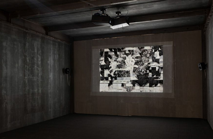 展覽的另一焦點是肯特里奇的“蘇荷•埃克斯坦”系列作品,內(nèi)容以近現(xiàn)代約翰內(nèi)斯堡私人采礦業(yè)的嚴酷現(xiàn)實為背景,敘述了商業(yè)巨豪蘇荷和他的妻子,以及映射藝術(shù)家本人的、身份卑微卻整天做白日夢的菲利克斯•泰特鮑姆之間的三角戀。作品“蘇荷•埃克斯坦”共包括十段錄像,包含肯特里奇生涯中一貫的視覺和敘事的主題:繪畫的擦去和重寫,啟蒙運動殘留的種族滅絕屠殺,相互依存的光與影,以及革命失敗的恐懼對革命燃起的希望的取代。