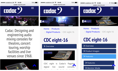近期,Cadac對官方網(wǎng)站www.cadac-sound.com 進行了優(yōu)化。優(yōu)化后,網(wǎng)站上提供了更多關(guān)于Cadac及其產(chǎn)品的信息和圖片,并且可以為臺式電腦/iPad/平板電腦/手機提供更好的瀏覽和導(dǎo)航。