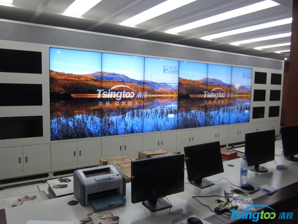 大屏顯示系統(tǒng)采用清投3X7 55寸LCD拼接,兩側(cè)采用8臺液晶監(jiān)視器輔助顯示。大屏控制系統(tǒng)采用21路高清輸出,8路RGB輸入,16路視頻輸入,充分保障了4分屏顯示的便捷性。為滿足客戶便捷使用需求,清投采用特殊技術(shù)將處理器與矩陣進(jìn)行一體化拼接,使大屏前后端都呈現(xiàn)一體化模式。