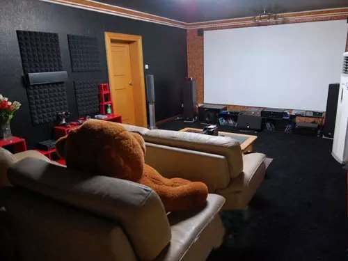 這一次的升級,除了器材,網(wǎng)友同樣把房間隨便也改造了一下,之所以有這樣的想法,主要是因為原來的影音室是十年前裝修的房間,整個房間通體多是大白墻,導致看投影時反光嚴重,一遇到較明亮的畫面就會出現(xiàn)白花花霧蒙蒙一片,怎么遮光都沒有用,非常不爽!所以該網(wǎng)友下定決心讓它徹底黑下來。由于在AV199上做足了功課,知道AV中心(功放)的重要性,一咬牙把2310升級到了4810。主要還是看重了11.3的前級輸出功能。另外,加上影音室的空間有足夠的空間,擺上十幾個喇叭是不成問題。還有就是英語與HIFI是兩條路,影院最重要的就是廣闊空間感。否則那種臨場感與大氣勢是難以表現(xiàn)出來的。。