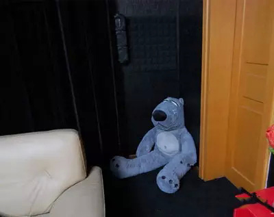 這東西小的不起作用,必須大個。這個倒霉熊站起身足有1米6。等同一個女生的大小。面料是超柔南韓絨,里面填充純三維PP棉。抱著非常有彈性。低頻的波長較長,至少這么大個的才能鎮(zhèn)住墻角。從它手上拿的4810遙控器可以大概感覺到大小。呵呵,四大天王鎮(zhèn)駐波。