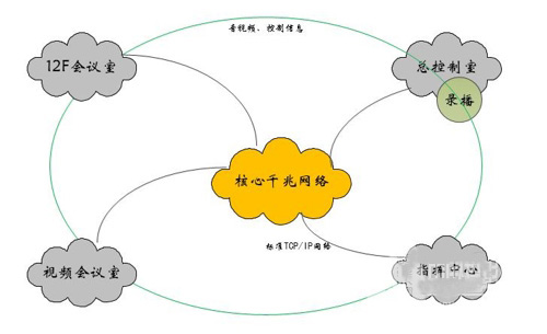 根據(jù)用戶需求,我公司經(jīng)過(guò)反復(fù)論證研究,該系統(tǒng)的指揮中心與12F會(huì)議室、視頻會(huì)議室進(jìn)行整體設(shè)計(jì),一體化建設(shè),采用網(wǎng)絡(luò)化音視頻分布式交互系統(tǒng)。該系統(tǒng)具備以下特點(diǎn):