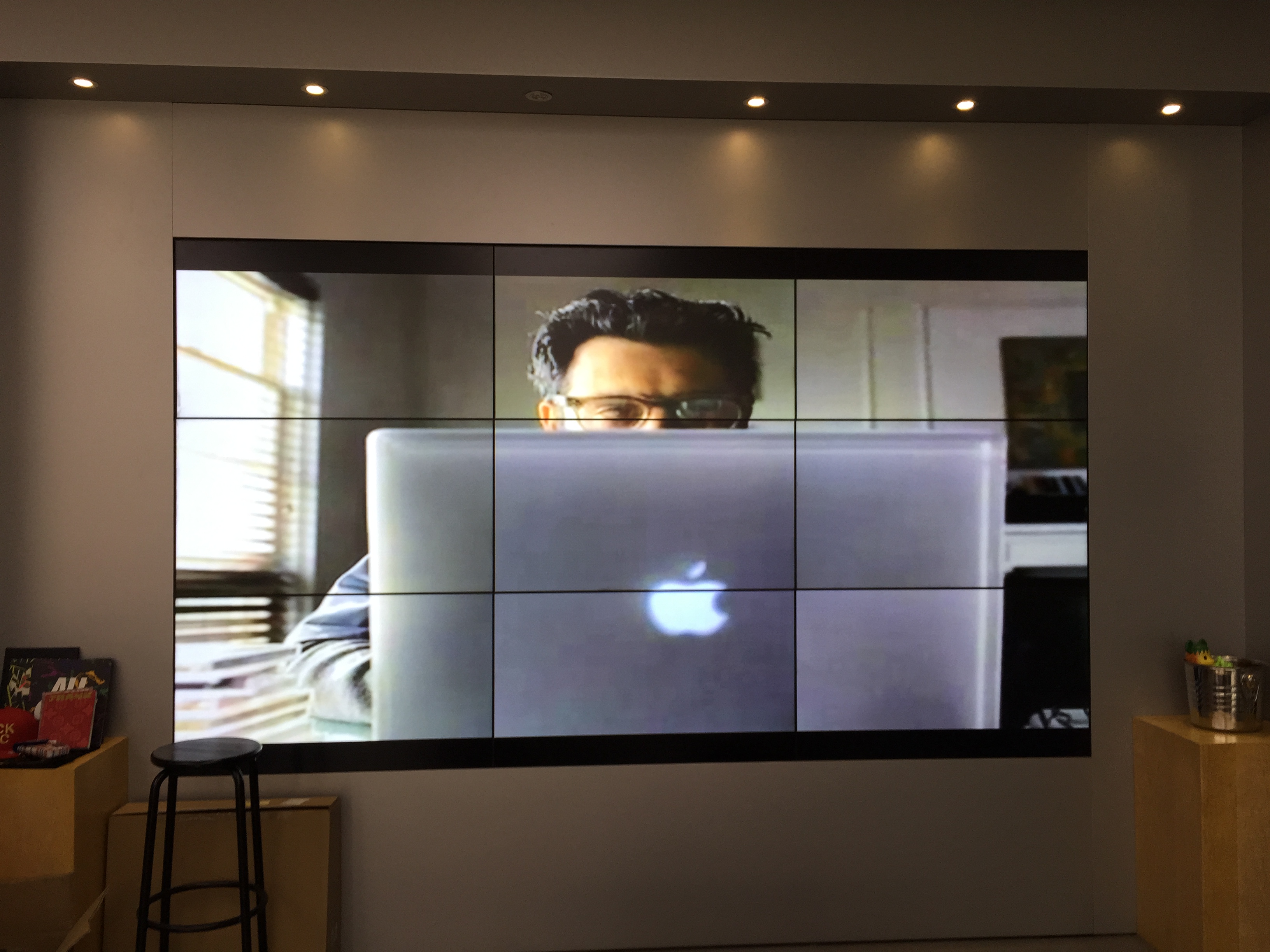 目前,峰寧科技為其揚州蘋果專賣店設(shè)計了一組 3x3 9片46寸液晶拼接墻。