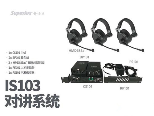 IS-103系統(tǒng)的標準配置包括,1個CS101小型主機(含喇叭)、1個PS101外接電源供應器、2個BP101腰包機和3個HMD685a單耳對講耳機,根據(jù)實際需要可以選購多個配件以擴展到多人同時使用。