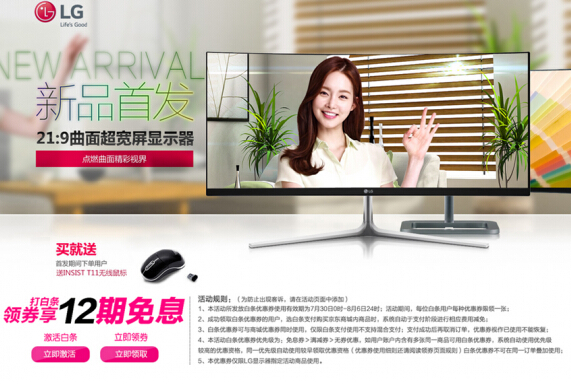 繼LG推出全球首款21:9曲面超寬屏顯示器34UC97-S后,掀起曲面顯示器狂潮。然而曲面顯示器不再是高大上的專屬,LG新推出的三款21:9曲面超寬屏顯示器34UC97C、29UC97C和34UC87C聯(lián)合京東首發(fā),更多大眾將感受曲面的非凡魅力,只需輕擊鏈接即可開(kāi)啟曲面視界:(http://sale.jd.com/act/RtYmKMzSg3j2.html)