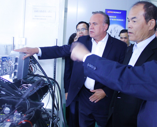 中村教授此行,與光峰高層及核心研發(fā)人員進(jìn)行了深入的技術(shù)交流和探討,在進(jìn)一步了解了光峰獨(dú)創(chuàng)的ALPD®(先進(jìn)的激光熒光顯示技術(shù))技術(shù)之后,他表示,對比全球激光顯示前沿技術(shù),ALPD®技術(shù)攻克了激光顯示在性價(jià)比、壽命、效率和可靠性方面的技術(shù)難關(guān),絕對是激光顯示領(lǐng)域最為領(lǐng)先的技術(shù)。而光峰ALPD®技術(shù)在激光投影機(jī)、數(shù)字院線、激光電視、舞臺燈、大屏拼接、高端照明燈多個(gè)領(lǐng)域的應(yīng)用也得到了中村教授的充分肯定, “以前我在日本和美國,買了很多中國制造的產(chǎn)品。今天通過對光峰的了解,我對”made in China”有了重新的認(rèn)識,現(xiàn)在的中國制造已經(jīng)可以稱之為高質(zhì)量的制造和原創(chuàng)性技術(shù)的創(chuàng)新。另外我期待在盡快美國的家里用上光峰的激光電視。”中村教授說。