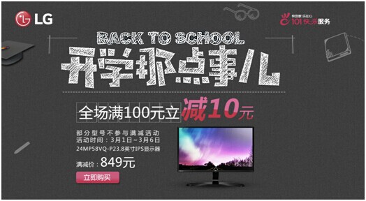 猴年新春新氣象,京東電腦節(jié)即將火爆開幕,本次活動(dòng)LG旗下全線產(chǎn)品都將參與其中和大家一起喜迎開學(xué)季!優(yōu)惠幅度真是“猴賽雷”!3月1日至3月6日登錄LG“開學(xué)那點(diǎn)事”活動(dòng)頁面選購,全場(chǎng)滿一百減十元,“晶”彩不容錯(cuò)過!活動(dòng)詳情請(qǐng)戳:http://sale.jd.com/act/HM6gdyAeEBuCJ.html