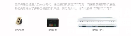 傳輸部分: 音頻傳輸已進(jìn)入了Dante時(shí)代,通過(guò)接口機(jī)實(shí)現(xiàn)低延時(shí),高保真及良好的擴(kuò)展性,為滿足專業(yè)級(jí)、消費(fèi)級(jí)等各種場(chǎng)景的應(yīng)用需求,聲菲特推出了DACO 22, Dbox44-I, DACO 1616等多種接口機(jī)。