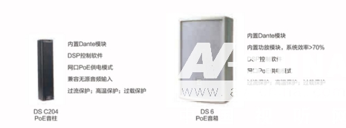 擴(kuò)聲部分:帶DSP控制軟件的支持Dante的POE音柱和POE音箱。
