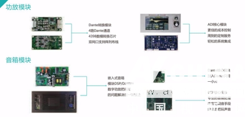 除以上會(huì)議系統(tǒng)中的成熟產(chǎn)品外,為解決各行業(yè)定制集成需求,聲菲特結(jié)合自身技術(shù)有勢(shì)還推出了DSP/Dante模塊+數(shù)字功放的嵌入式音箱模塊、DSP+Dante的功放模塊。