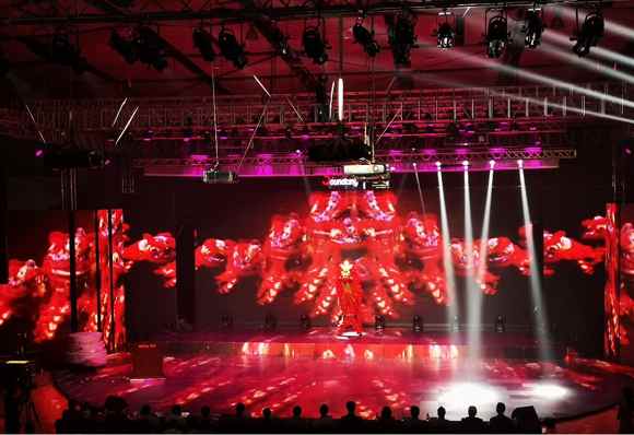 絢麗的燈光秀過(guò)后,由3D全息投影打造的一場(chǎng)氣勢(shì)恢宏、聲情并茂的《聽(tīng)·見(jiàn)天籟砥礪三十年共筑音王夢(mèng)》大型文藝晚會(huì)正式拉開(kāi)。只見(jiàn)一頭雄獅沿著智慧多功能文化體育娛樂(lè)中心奔跑一圈,立于紅日之上,象征著音王如同雄獅一般,獅吼振天,成為音響行業(yè)的強(qiáng)者。身臨其境的表演將現(xiàn)場(chǎng)嘉賓紛紛帶進(jìn)Soundking的世界,感受它的品牌光芒。