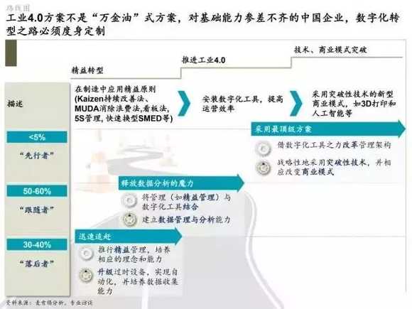中國(guó)制造要牢牢抓住工業(yè)4.0的機(jī)遇,必須通過(guò)以下三個(gè)關(guān)鍵舉措設(shè)計(jì)量身定制的數(shù)字化轉(zhuǎn)型路徑。