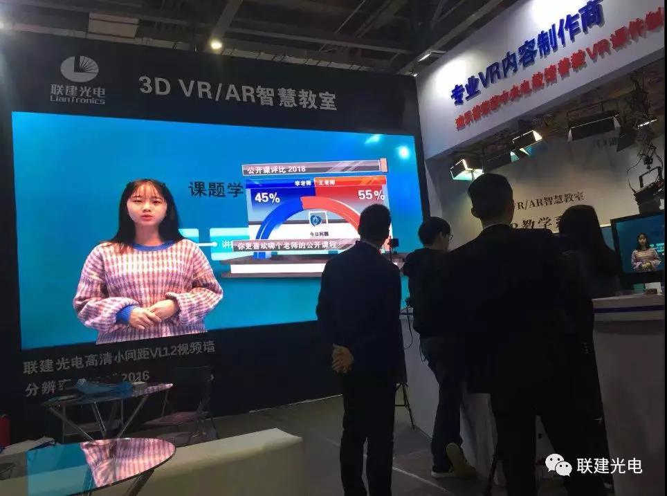 2018年11 月17日至19日,以“展示、交流、合作、發(fā)展”為主題,由中國教育裝備行業(yè)協(xié)會主辦的第 75 屆中國教育裝備展示會在江西省南昌市綠地國際博覽中心舉行,中國教育裝備展示會被譽為教育裝備市場的風向標,已成為行業(yè)內(nèi)規(guī)模最大的展示交流平臺。本次展會聯(lián)建光電攜PH1.2小間距LED顯示屏與VR(虛擬與現(xiàn)實)技術(shù)相結(jié)合精彩亮相,展位號為A1036。展會期間,聯(lián)建光電小間距LED顯示屏結(jié)合VR技術(shù)打造的“智慧”課堂之旅,用超4K的分辨率(4096*2016)和超大尺寸的顯示畫面,顯著提升了VR技術(shù)的體驗度,吸引了許多觀眾參與其中,大家對這一新穎的教學方式表現(xiàn)出極大的興趣和好評。眾所周知,LED