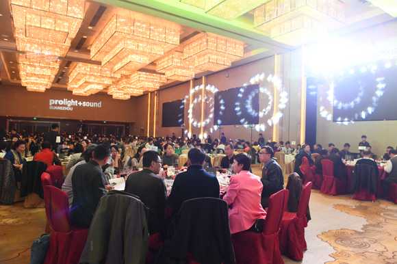 2019廣州國際專業(yè)燈光、音響展覽會答謝晚宴座無虛席,主辦方向與會人士舉杯祝酒。