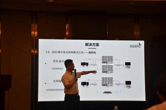 首先上臺為我們講解的是主辦方小鳥科技華南區(qū)負責人李總,他為我們講解了可視化坐席管理系統(tǒng)、園區(qū)/樓宇級音視頻解決方案 、單一指揮中心音視頻解決方案(坐席管理一體化系統(tǒng)、可視化綜合管控系統(tǒng))
