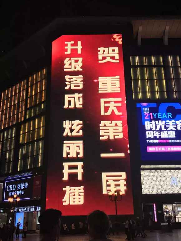人們僅需離屏2.2米,即可觀覽全屏。即使站在300米開外,也能一眼望到這塊巨幕。這塊屏在解放碑的點(diǎn)亮,讓這個(gè)老牌商圈重?zé)ü獠省P』锇閭儯旅婷驳慕夥疟遣皇呛芟肴タ匆豢矗?/FONT>