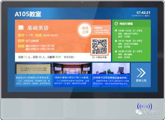 在云技術的推動下,電子班牌的功能更加豐富,表現(xiàn)更靈活。云技術加持的電子班牌,可以對課前、課中、課后的各個環(huán)節(jié)進行支撐,全面提高教學質(zhì)量和實現(xiàn)教育信息化建設。關注大為世紀,關注身邊的科技資訊。