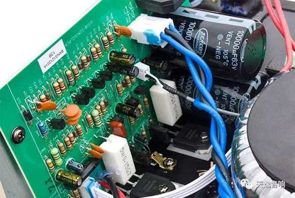 電路方面,以國(guó)產(chǎn)天逸的SUB-12TD低音炮為例:該低音炮輸入部分設(shè)計(jì)了一系列高通通和低截濾波器,其中分為:一級(jí)性能優(yōu)異的低噪聲恒流源和電子穩(wěn)壓的差分電壓放大電路、一級(jí)電流放大電路、末級(jí)高效率的大電流甲乙類推挽功放電路等。功放最末級(jí)增加了一級(jí)由Q12/Q15擔(dān)綱的電流放大擴(kuò)充電路去推動(dòng)達(dá)林頓功率放大,推挽電路上下臂共4只15A/150W的2SC5200/2SA1943東芝大功率管,配合超大的鋁合金外露式梳狀散熱器,以確保該電路在4歐時(shí)有350W的充足功率輸出。相信這樣大的功率儲(chǔ)備,足以滿足一只優(yōu)秀低音炮的嚴(yán)格功率要求!在充分保證主體功放電路優(yōu)秀的同時(shí),該電路還設(shè)計(jì)了一系列過流、過壓、過熱等保護(hù)電路,以保證該低音炮正常工作時(shí)的可靠性。開箱可見:在選擇電阻電容時(shí),所有的電阻均選用優(yōu)質(zhì)五色環(huán)金屬膜電阻。在可能影響音質(zhì)的主要通道和電源濾波部份,分別選用了音質(zhì)好、可靠性高的音頻專用電容和倍受青睞、容量高達(dá)20000微法的日本紅寶石音響專用電解或MARCOM優(yōu)質(zhì)音頻專用電解大水塘;右側(cè)一只400VA的巨型變壓器十分醒目,為整機(jī)提供了充沛的動(dòng)力保障!