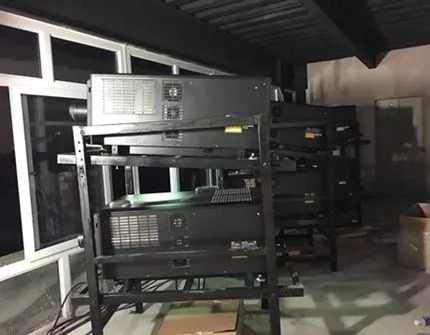 看臺兩側(cè)各安裝6臺NEC PH3501QL+工程投影機