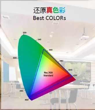 其次,HLD采用LED技術(shù),LED本身顏色表現(xiàn)非常好,從色域圖來看,LED覆蓋的范圍比激光更好,不管是紅色還是其他顏色,整體視覺效果都會鮮艷很多(當(dāng)然,這只是針對單色激光來講的,并不包括雙色和三色激光)。與HLD相比,單色激光的藍(lán)色是純激光的,這就導(dǎo)致藍(lán)色顯示會偏藍(lán),其物理特性決定了單色激光在其他顏色的整體匹配性上就會弱一些。從色彩均勻性來看,HLD可以說秒殺單色激光。