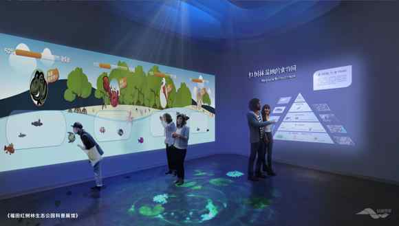 福田紅樹(shù)林生態(tài)公園科普展館作為對(duì)外科普展示的窗口,加強(qiáng)公眾對(duì)深圳紅樹(shù)林及濕地生態(tài)系統(tǒng)的認(rèn)識(shí)和了解,提升項(xiàng)目所在區(qū)域生態(tài)環(huán)境質(zhì)量,貫徹執(zhí)行科學(xué)發(fā)展觀、建設(shè)生態(tài)文明社會(huì),促進(jìn)城市可持續(xù)發(fā)展。設(shè)計(jì)過(guò)程中,我們本著對(duì)內(nèi)容科學(xué)性及趣味性負(fù)責(zé)的態(tài)度,在強(qiáng)調(diào)內(nèi)容傳達(dá)準(zhǔn)確性的同時(shí),重點(diǎn)考量了整館參觀的趣味性,強(qiáng)調(diào)參觀者的主動(dòng)參與性。展館綜合了視頻演繹,觸摸互動(dòng),紅外操控,油墨導(dǎo)電,動(dòng)畫捕捉等多類別交互形式,同時(shí)也添加需要物理操作的游戲展項(xiàng),極大豐富了參觀者的參觀體驗(yàn)。