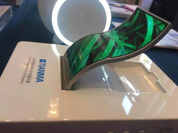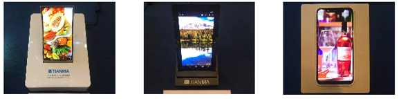 柔性產品一直是近年顯示領域的熱門話題,此次天馬展出多款柔性產品,其中這款5.99英寸18:9外彎折疊的全面屏,屏幕的上、左、右均為0.85mm的窄邊框,搭配雙排COF設計,具有超高屏占比,分辨率為2880×1440,解析度達到真正的FHD 538 PPI。該屏可以大幅度減少智能終端設備的體積和重量,在屏幕顯示尺寸不變的情況下,彎折的形式更便于攜帶,擁有更多的使用場景,為智能手機等終端應用提供了更多選擇。