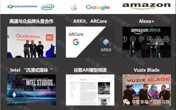 Facebook之外,我們耳熟能詳?shù)目萍季揞^無一不在積極布局XR產(chǎn)業(yè)——亞馬遜除了推出AR鏡子,更是“派遣”語音助手Alexa“進(jìn)駐”多個(gè)品牌的XR輸出整機(jī);Google正通過ARCore、AR網(wǎng)頁按鈕和VR180視頻范式部署各類XR平臺,構(gòu)建XR生態(tài);蘋果雖遲遲未推出XR硬件,但ARKit引發(fā)簡易AR熱潮后,蘋果正積極申請AR專利并廣泛接洽硬件供應(yīng)商,釋放深入布局信號;Intel將VR/AR作為與自動(dòng)駕駛、5G、AI并行的四大新市場戰(zhàn)略之一,并在XR無線傳輸(WiGig)、沉浸式媒體兩方面取得了突破性進(jìn)展;國內(nèi)企業(yè)小米、華為、聯(lián)想、創(chuàng)維均已推出硬件整機(jī),BAT雖未直接推出硬件,但阿里投資了AR獨(dú)角獸Magic Leap,騰訊收購了若干歐洲XR游戲公司,百度已與硬件廠商開展XR云技術(shù)架構(gòu)合作,阿里、京東、蘇寧都分別構(gòu)建了自己的AR營銷戰(zhàn)略。