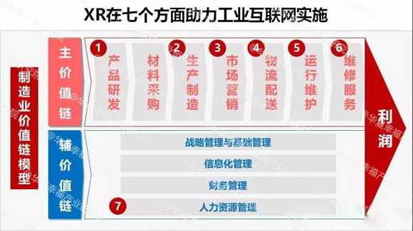 此外,XR在制造業(yè)的產(chǎn)品研發(fā)、生產(chǎn)制造、市場營銷、物流配送、運(yùn)行維護(hù)、維修服務(wù)、人才培訓(xùn)等主、輔價(jià)值鏈環(huán)節(jié)均能發(fā)揮重要作用,以AR為主,VR為輔。XR在制造業(yè)中的應(yīng)用起源于航空制造,目前在汽車領(lǐng)域應(yīng)用最為廣泛,后面我們會專門分享。