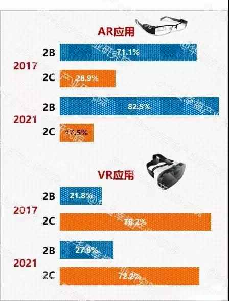 一是2B應(yīng)用明顯增多,原因其實(shí)非常簡單——AR眼鏡更輕便,且可同時(shí)觀察周邊實(shí)景與虛擬物體,2B應(yīng)用場景勢必較完全封閉獲取虛擬內(nèi)容的VR更豐富,而VR在2C端的娛樂應(yīng)用已基本成熟,VR企業(yè)必然要將觸角伸向2B端。
