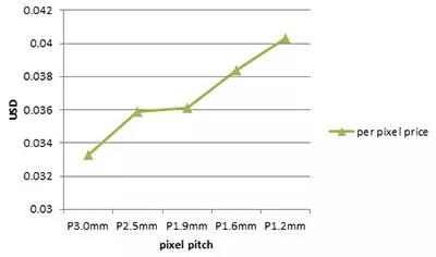 LED芯片單價(jià)隨著像素間距(Pixel Pitch)越小