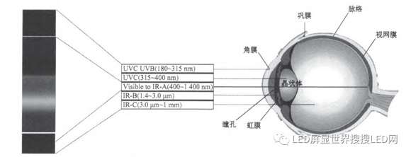 圖1:不同波段的光在人眼組織中的透過情況